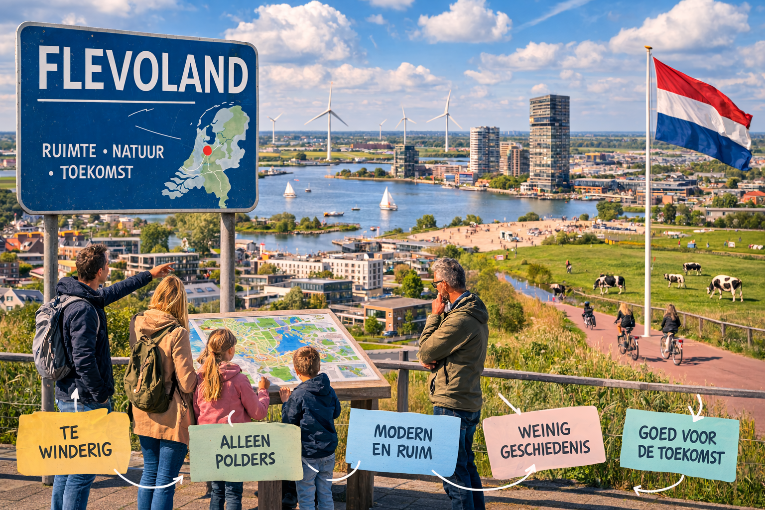 Voor veel mensen die Flevoland bezoeken, blijkt de provincie anders dan verwacht. De combinatie van ruimte, moderne steden, natuur en water geeft het gebied een eigen karakter. Juist doordat Flevoland zo jong is, blijft de provincie zich ontwikkelen en verandert ook het beeld dat anderen ervan hebben.